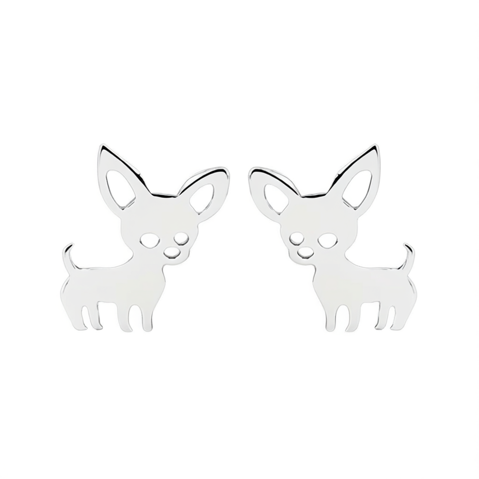 Cute Chihuahua Stud Earrings White Gold Zinc Alloy Unisex Fashion Jewelry Gift Animal Shape Earrings