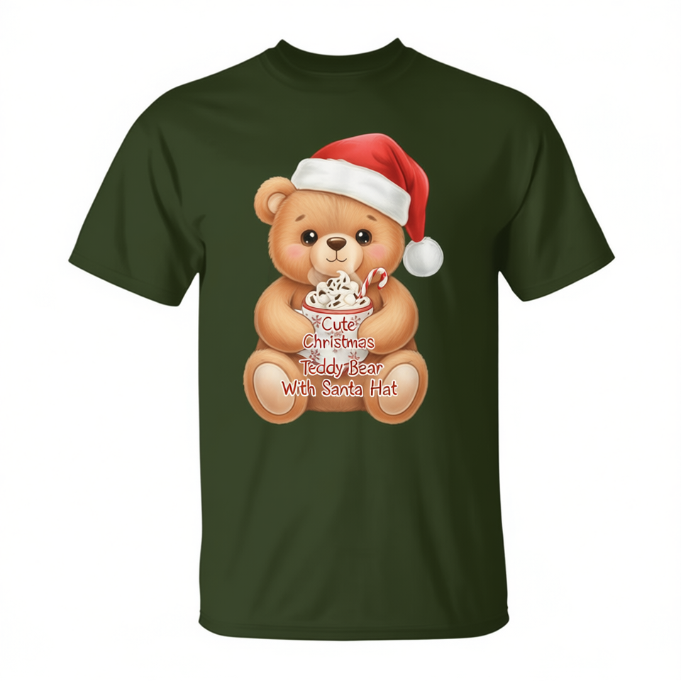 Cute Christmas Teddy Bear With Santa Hat T-Shirt