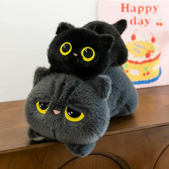 Peluche Gatto Nero Accovacciato Carino con Imbottitura in Cotone PP, Bambola Unisex da Abbracciare per Dormire, Regalo
