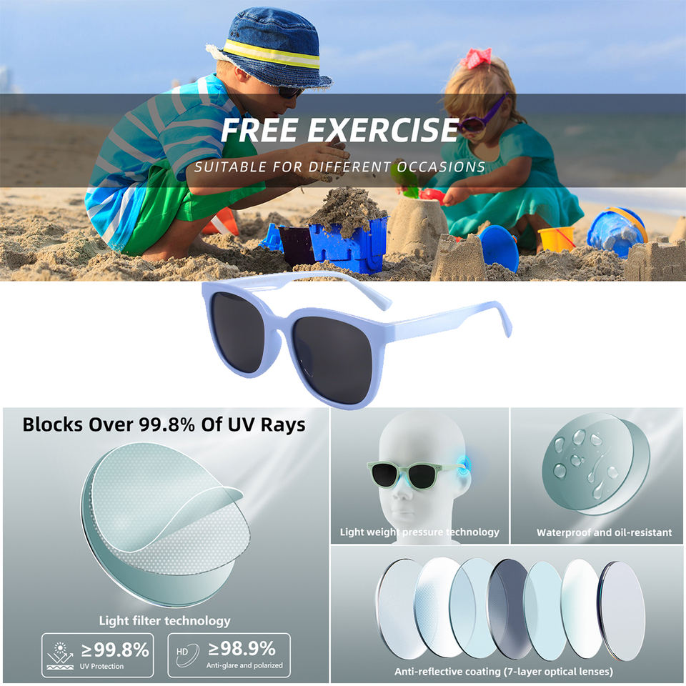 Logo personalizzato carino bambini polarizzati occhiali da sole infrangibile TPEE telaio della fabbrica all'ingrosso per ragazzi ragazze età 3-7 occhiali da sole per