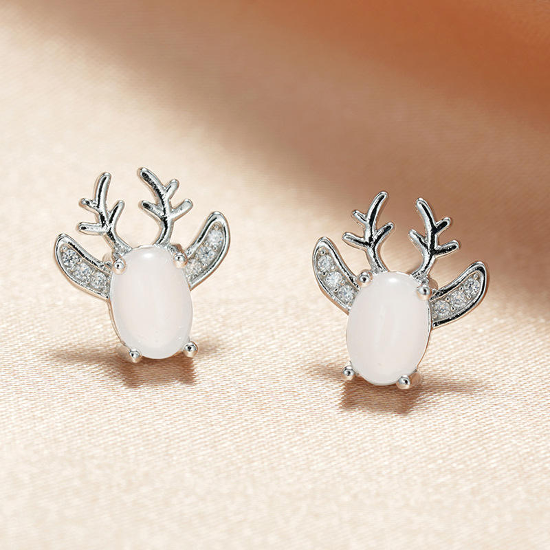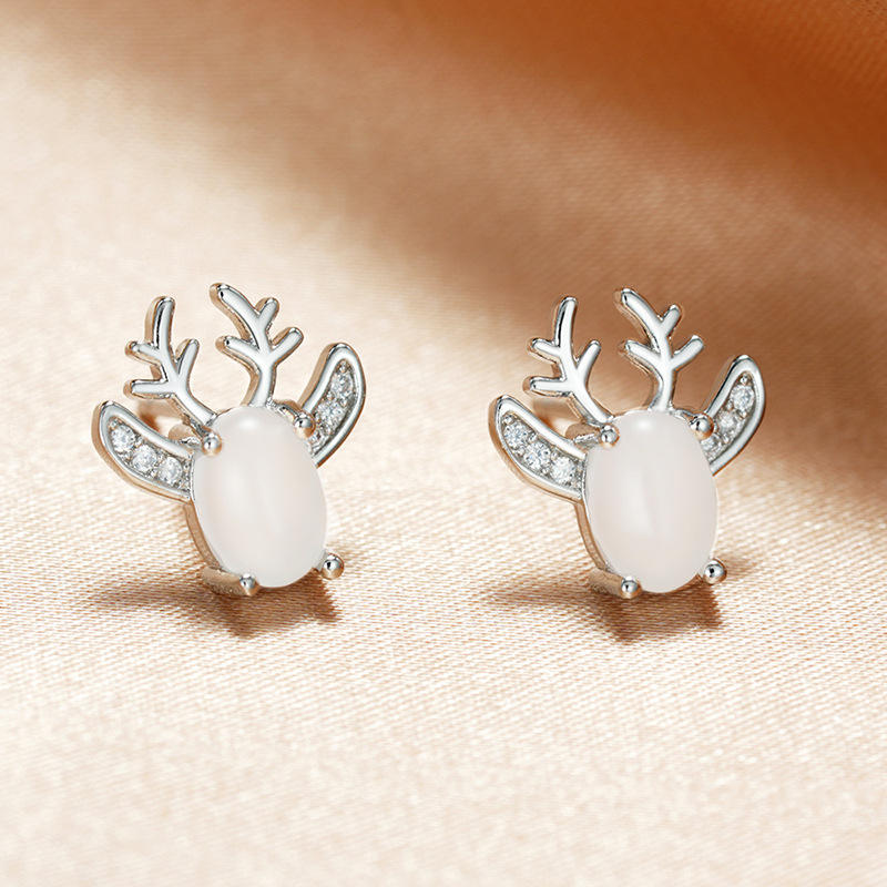Cute Deer Stud Earrings For Women Silver Plated Crystal Rhinestone Animal Shape Gift Jewelry Fashion Earrings