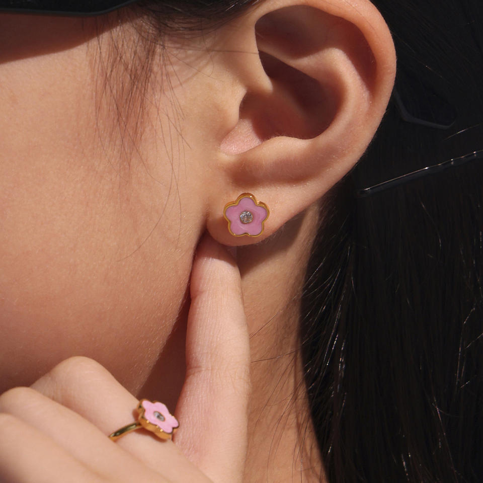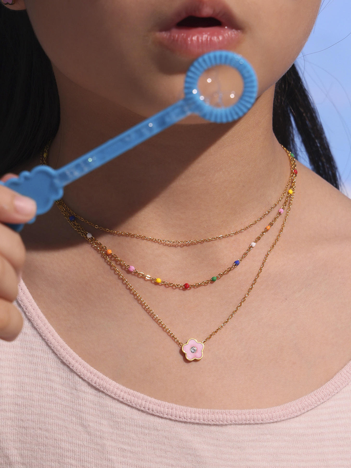Set di Gioielli per Bambini dal Design Grazioso, Placcato in Oro 18K, Acciaio Inossidabile con Zirconi, Collana, Bracciale, Orecchini e Anello a Forma di Fiore