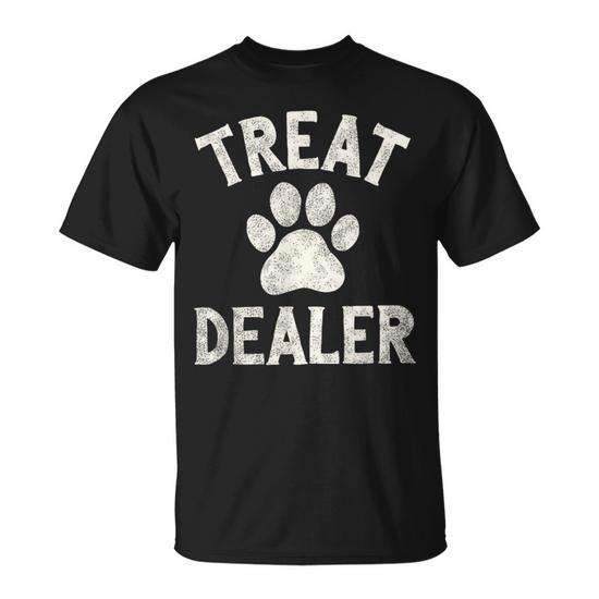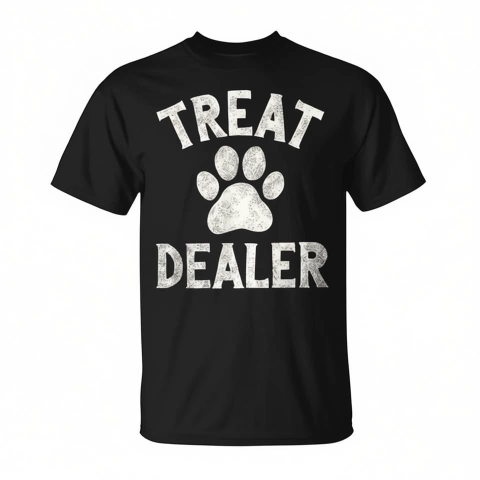 T-shirt Promozionale con Simpatico Motivo a Zampa di Cane e Scritta 'Treat Dealer' Stile Vintage