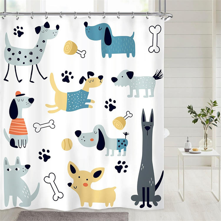 Cute Dogs Shower Curtain Funny Lovely Cartoon Animal Paw Print Polyester Waterproof Shower Curtain for Kids Girl Boy Bathroom