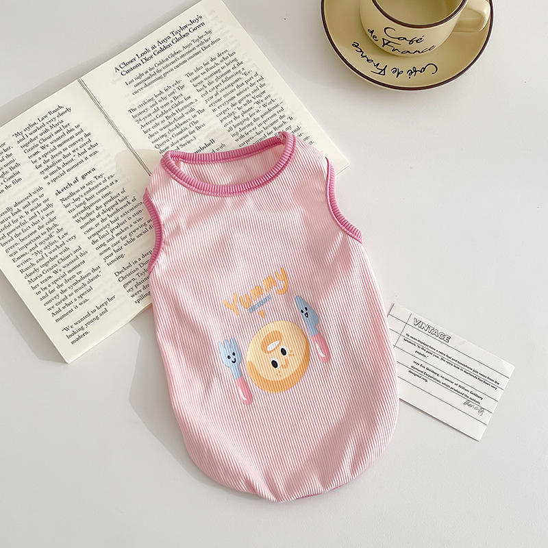 Gilet a Costine per Cani con Stampa di Ciambelle, Traspirante, Estivo, Senza Maniche, per Cani di Piccola Taglia e Cuccioli, per Uso Quotidiano
