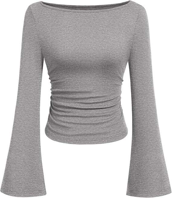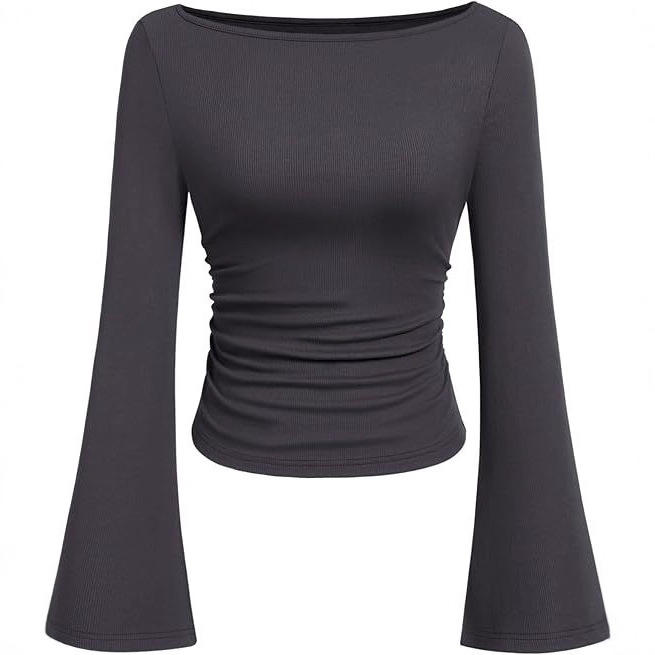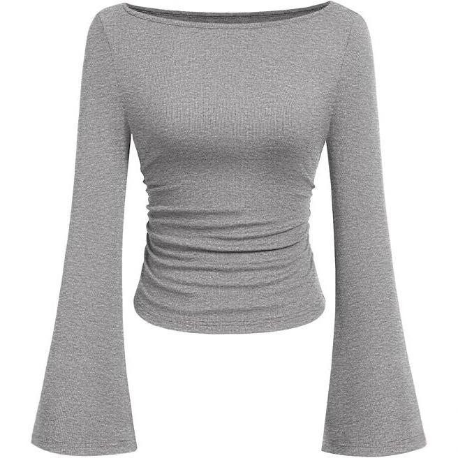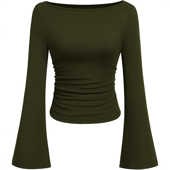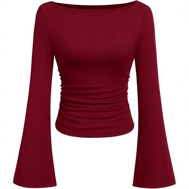 T-shirt a maniche lunghe da donna in viscosa, slim fit, con collo alla coreana, tinta unita, stile europeo-americano, effetto snellente, per l'autunno.