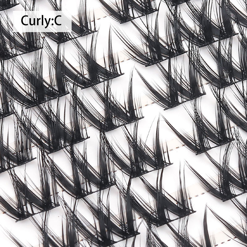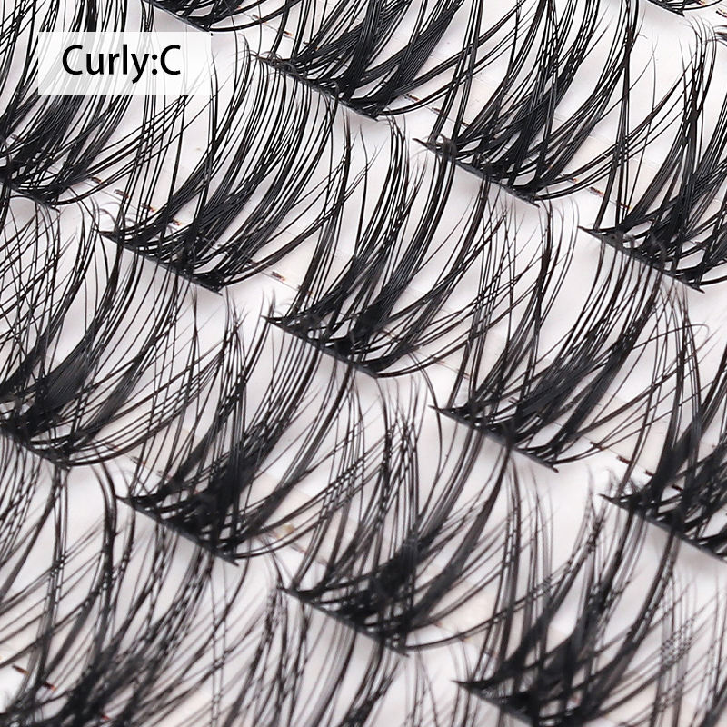 Ciglia a striscia intera Curly C in fibra vegetale, realizzate a macchina, con banda in cotone nero, spessore misto, doppia faccia, con espositore a libro