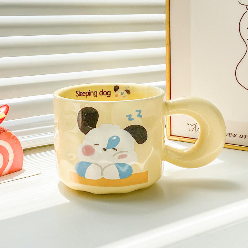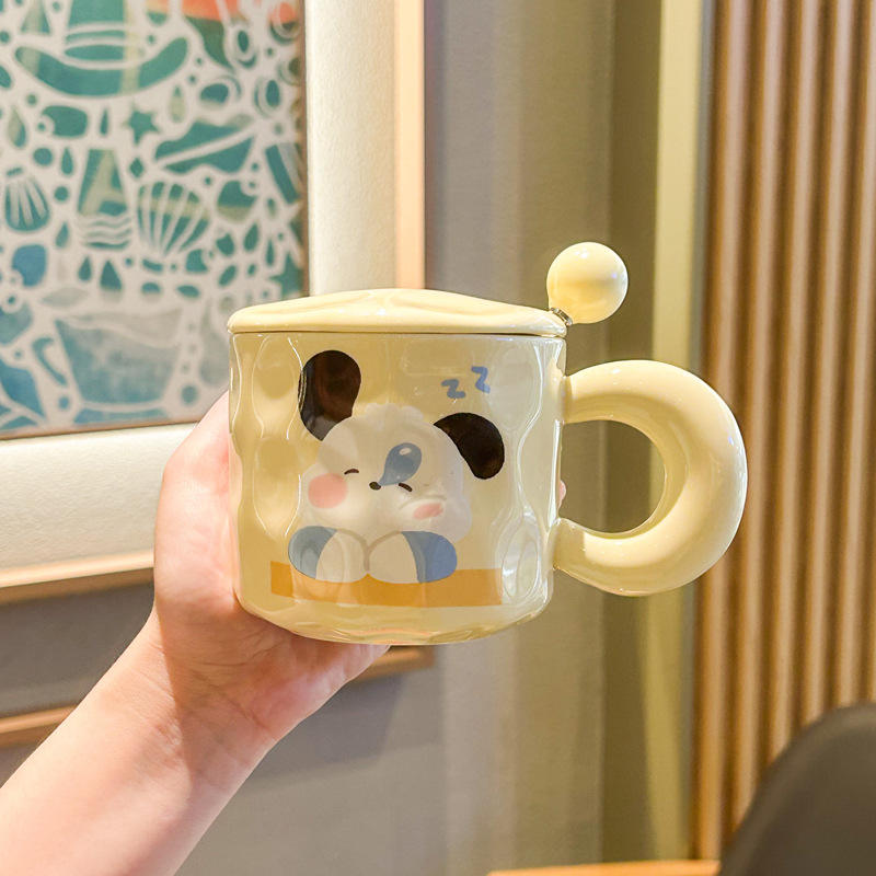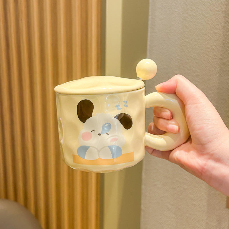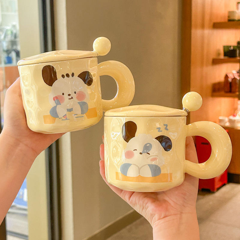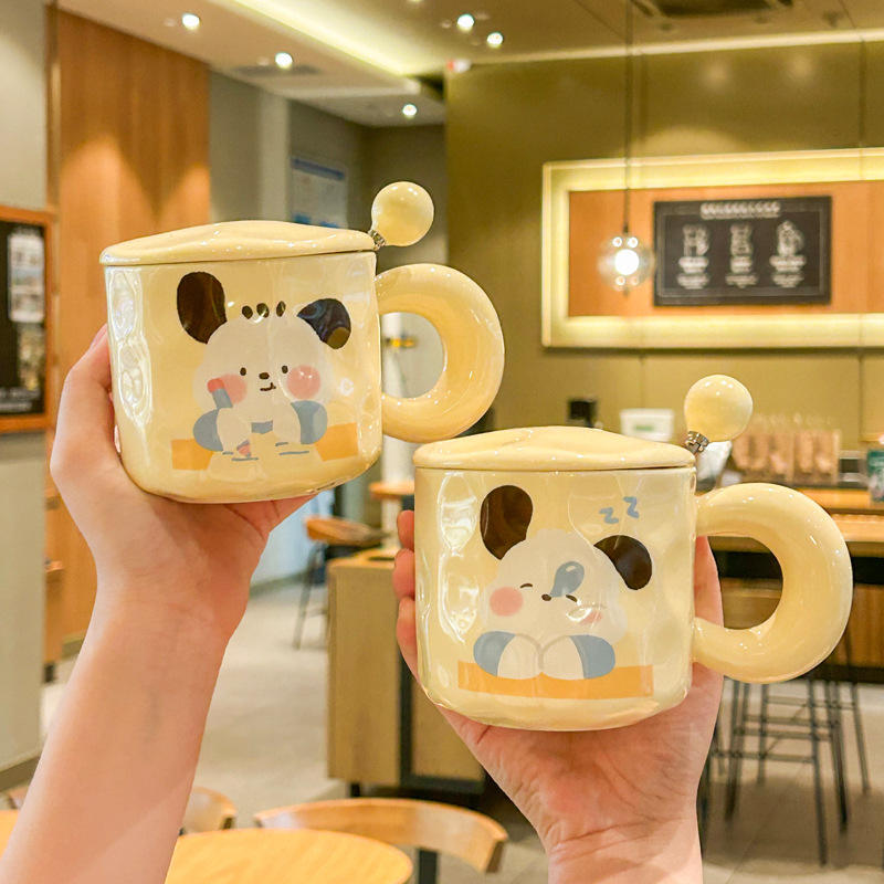 Carino ragazza ceramica 400ml capacità tazza da caffè coperchio cucchiaio sicuro argilla calda confezionata per ufficio coppia cucciolo colazione semplice tazza da tè