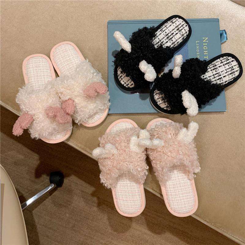 Ciabatte pelose con una sola parola e carine con cuore da ragazza carina per stivali caldi autunnali e invernali pantofole in peluche con suola morbida per la casa