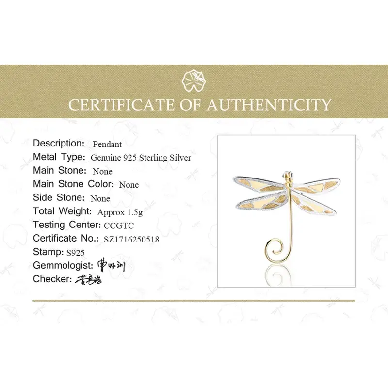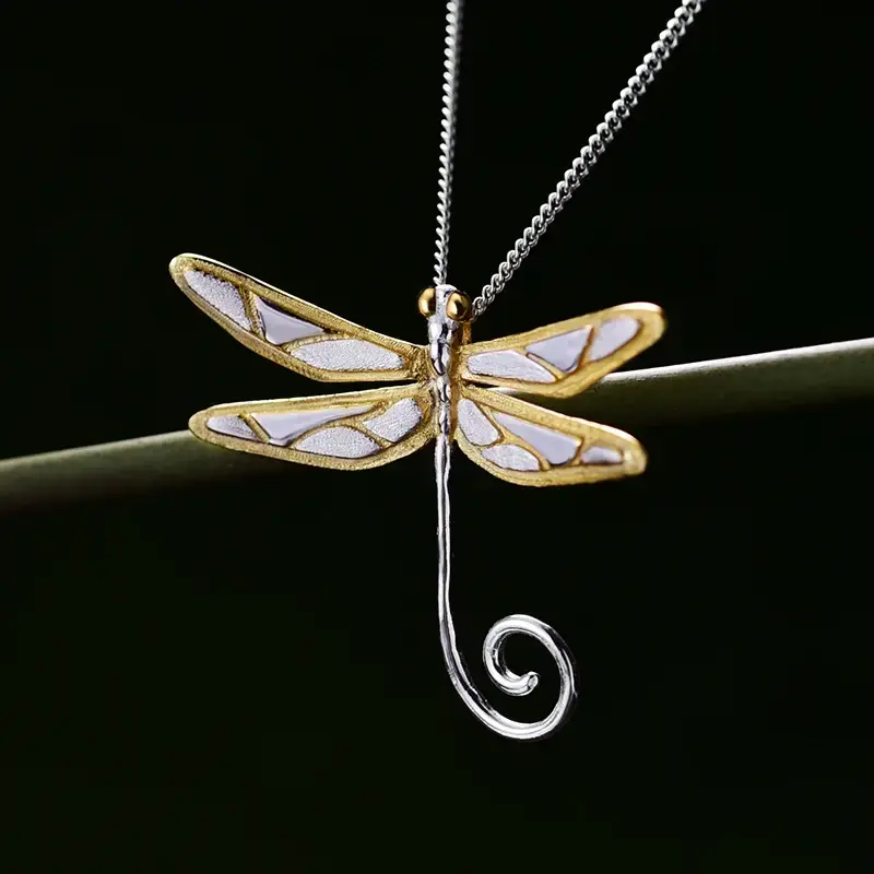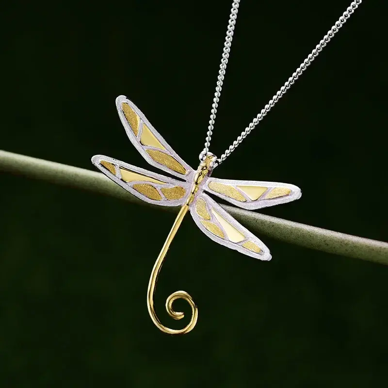 Ciondolo a forma di libellula placcato oro, in lega di zinco, per creazione gioielli, regalo unisex di alta qualità (senza collana)