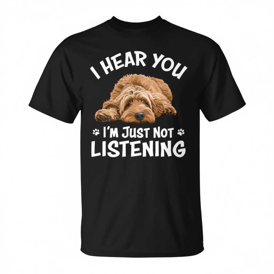 T-shirt girocollo a maniche corte unisex per adulti con stampa Cute Hear You Not Listening Labradoodle Lover