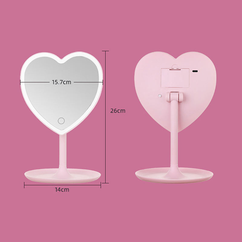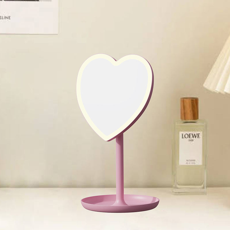 Specchio da Tavolo LED a Forma di Cuore - Specchio Illuminato con Controllo Touch Intelligente per Camera da Letto delle Ragazze