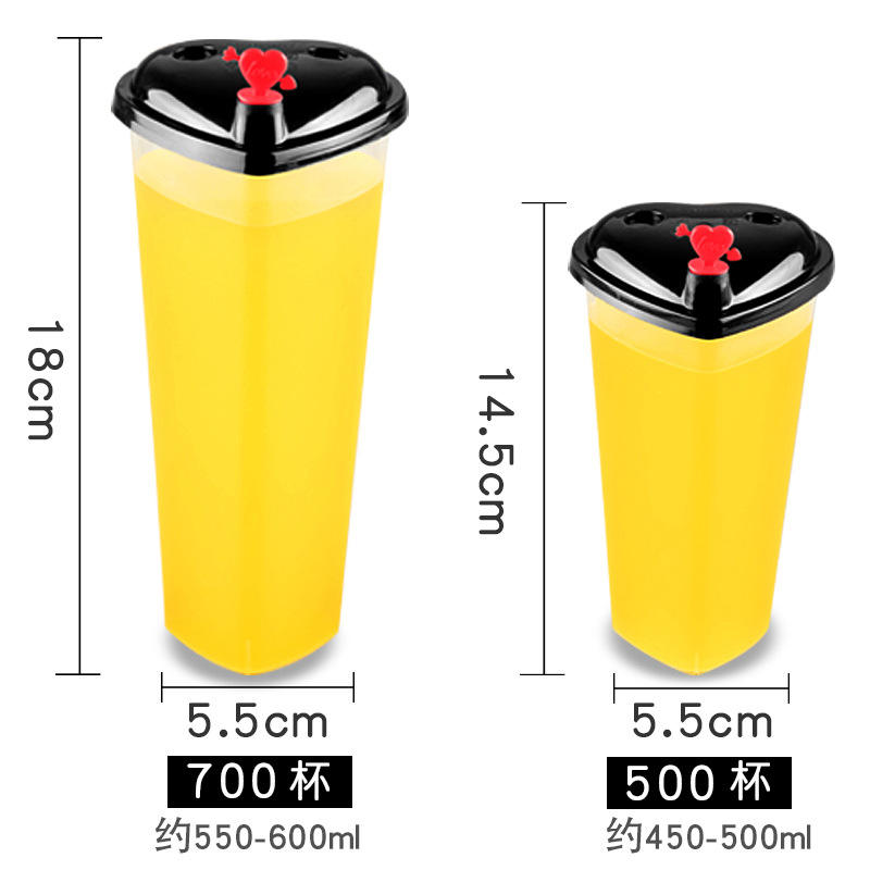 Tazza per Bubble Tea a Forma di Cuore Carina Capacità 500ml 700ml Bicchiere in Plastica PP Monouso per Bevande
