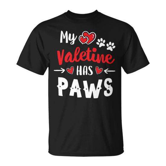 T-Shirt Promozionale Personalizzata con Design 'Cute Hearts My Valentine Has Paws' per Proprietari di Cani, Gatti e Cuccioli