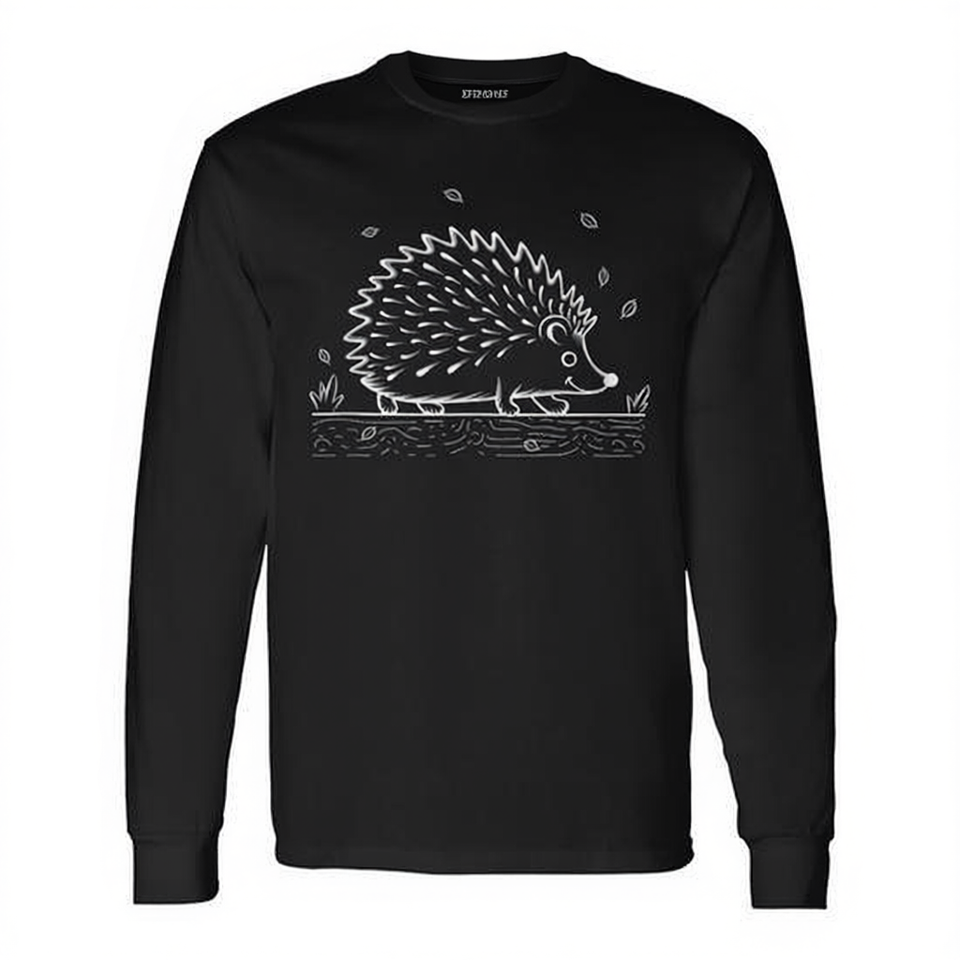 T-shirt a maniche lunghe Cute Hedgehog Journey, design grafico nero, stampa animalier, abbigliamento unisex