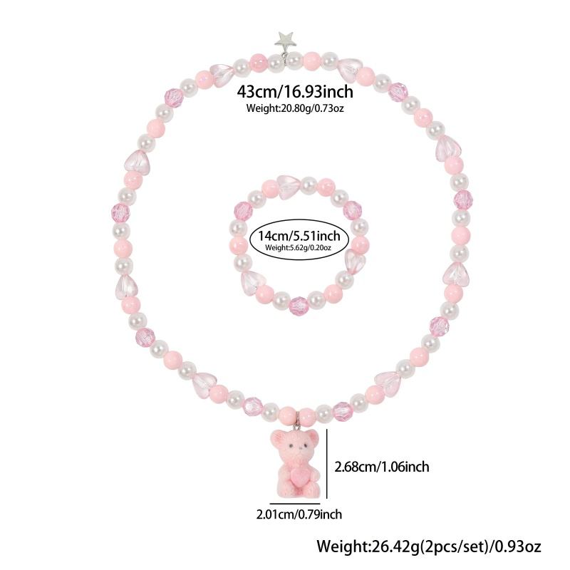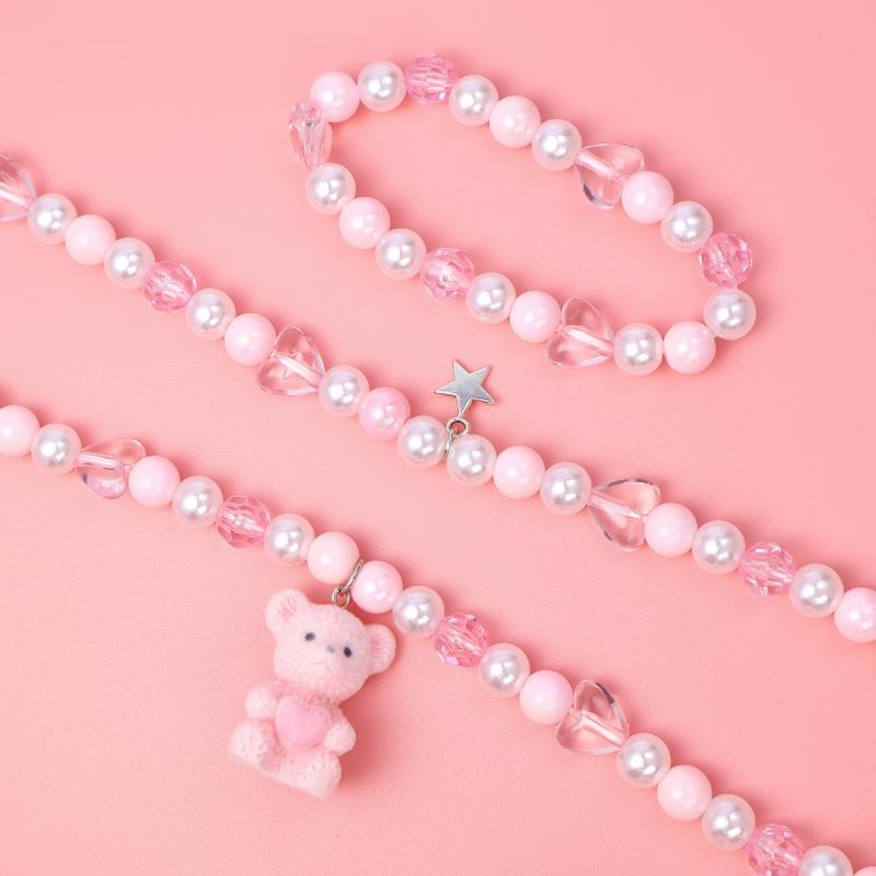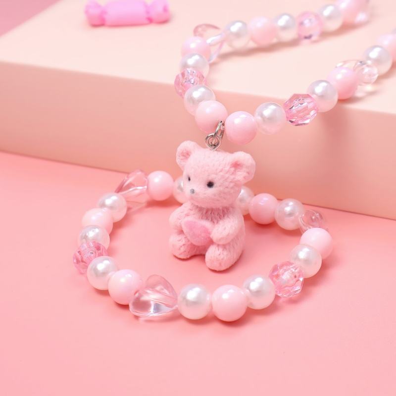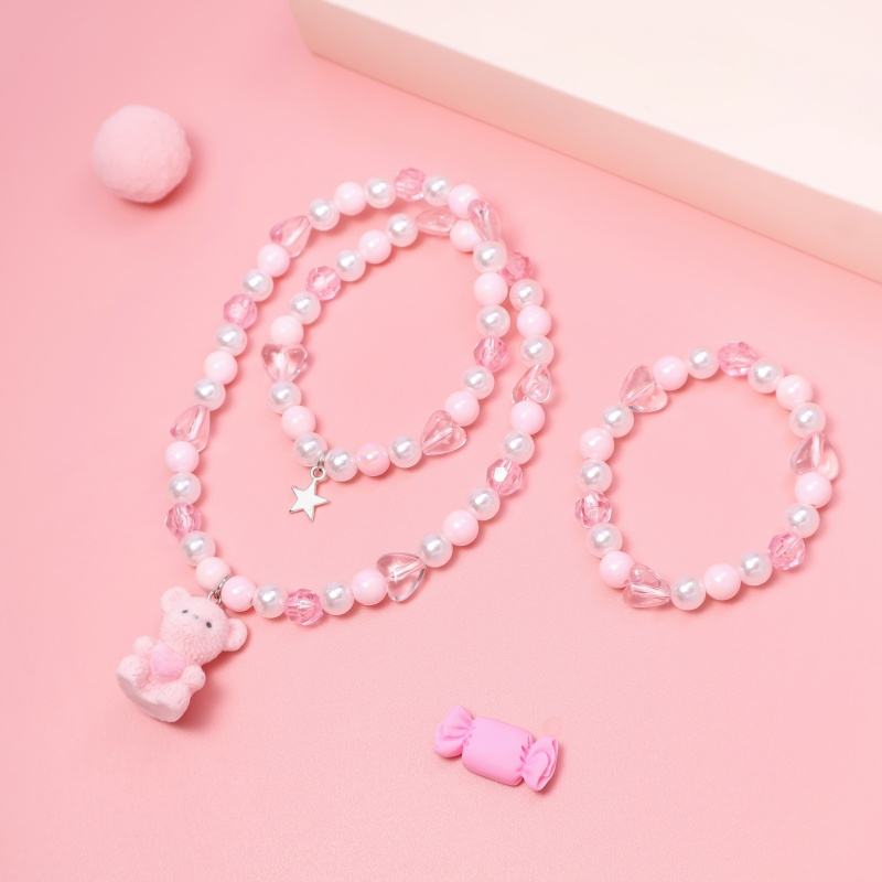 Cute Jewelry for Little Girls Necklace Bracelet with bear pendant ,toddler Dress up Jewelry Princess Gifts