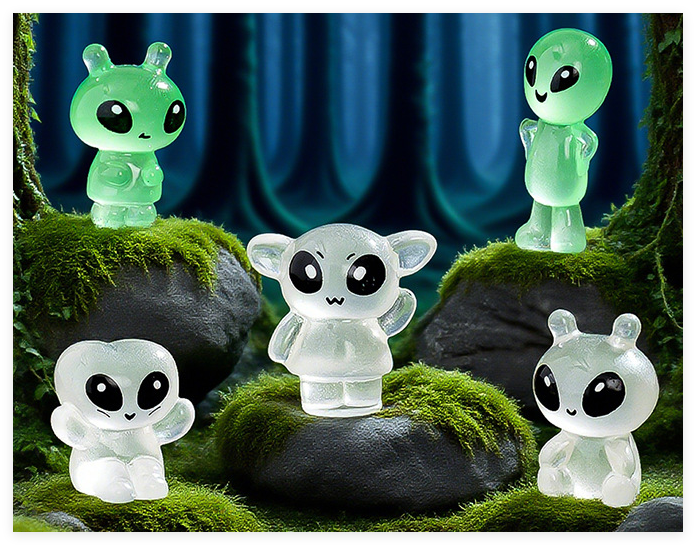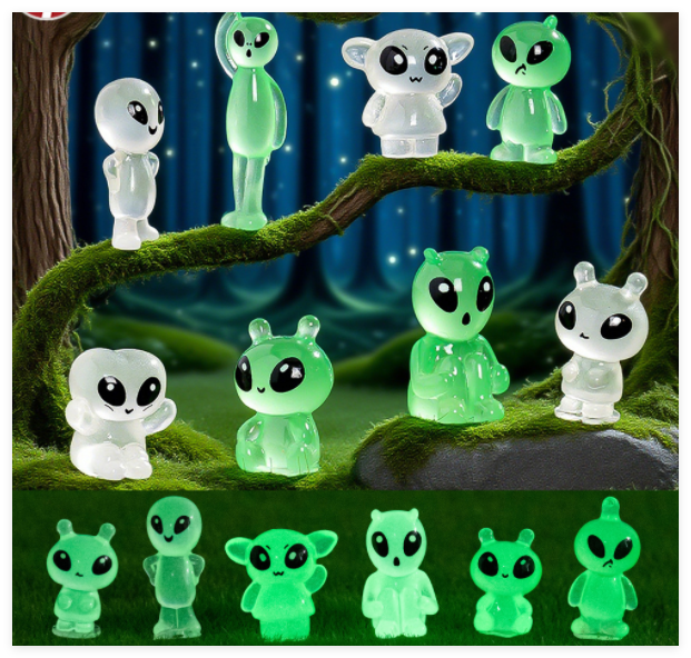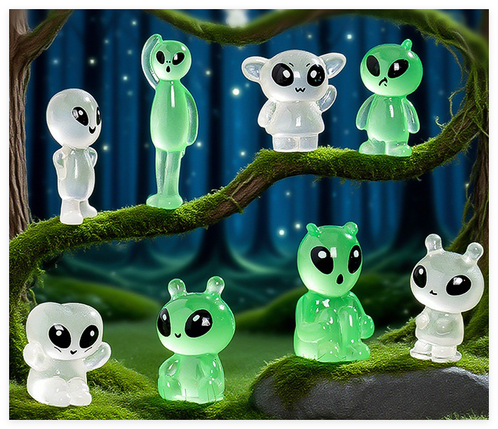 Cute Kid Game 3D alien Resin Miniature Toy Extraterrestrial Figurine Glowing Luminous Charm Garden Sculpture Aquarium Decoration