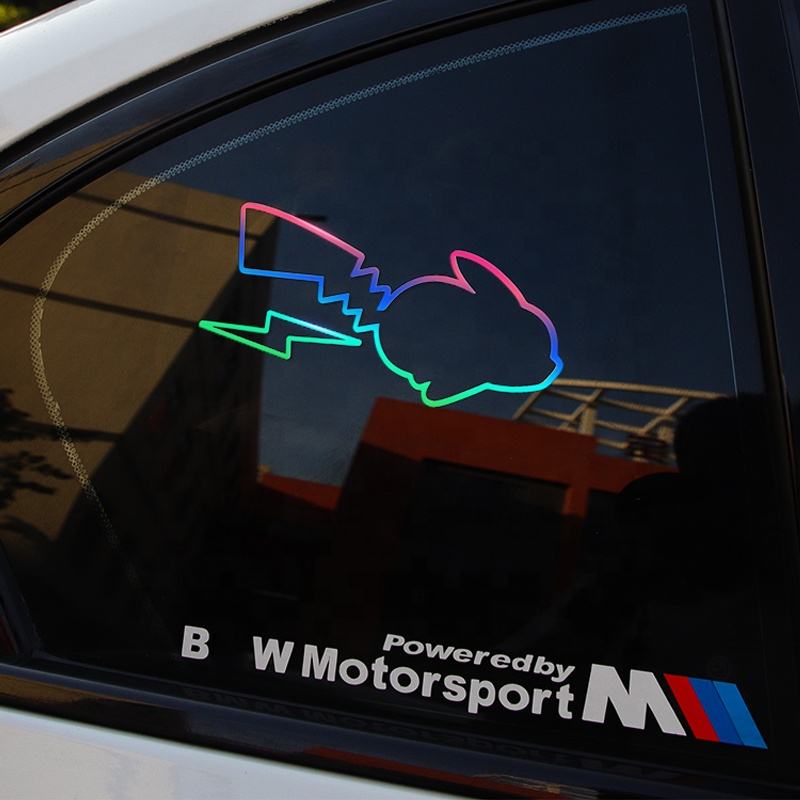 Adesivi Laser Pikachu Carini, Decalcomanie Cartoon Anime, Adesivi Trasferibili per Auto, Bici, Casco, Moto