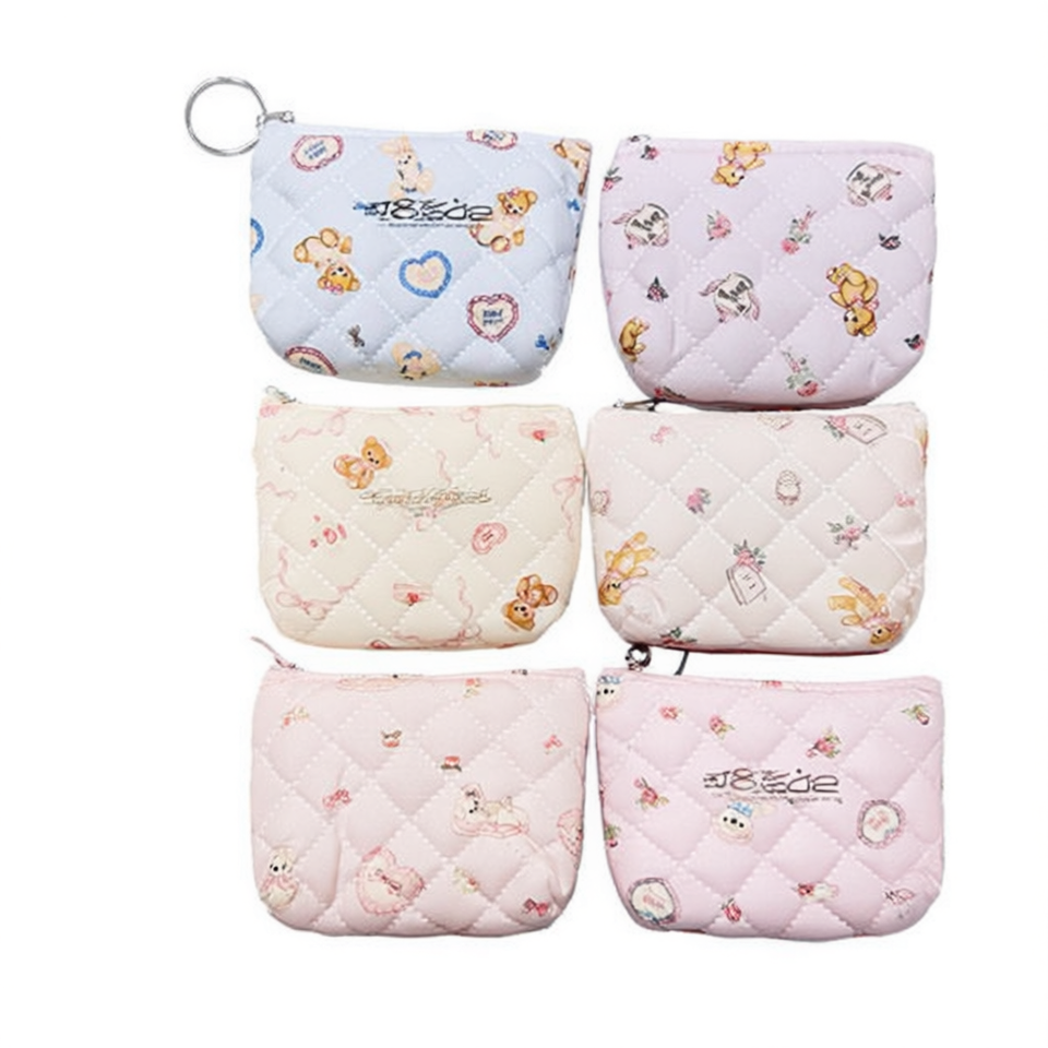 Portamonete a forma di orsetto carino 10x8,5 cm, portafoglio trapuntato con cerniera per donne e ragazze, mini portatile con motivo a cartoni animati