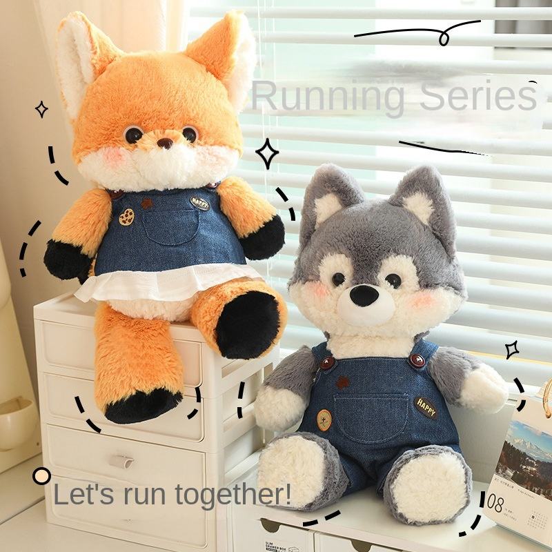 Cute Little Fox Big Bad Wolf Plush Doll Super Soft Comforter with PP Cotton Filling Washed Technics Birthday Gift for Girls