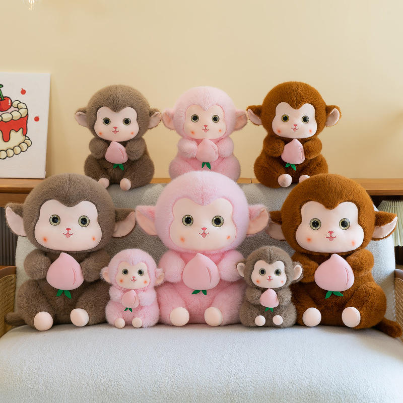 Simpatico Giocattolo a Forma di Scimmietta con Pesca, Peluche Decorativo per la Casa