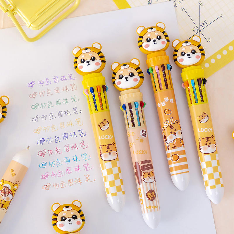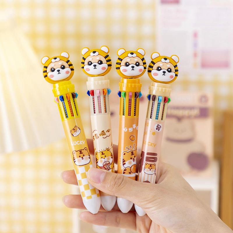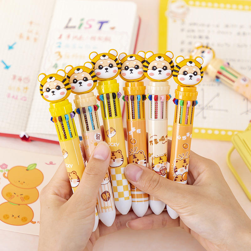 Graziosa penna a sfera a dieci colori tigre, pennarello per conto manuale, penna a sfera universale con 10 carte colorate