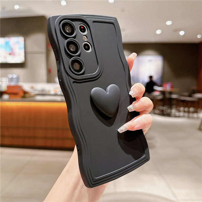 Cute Love Heart Curly Wave Case per Samsung S23 S22 Ultra S21 Plus S20 FE A14 A34 A54 A53 A52 A23 A33 A13 A32 A51 A71 Soft Cover