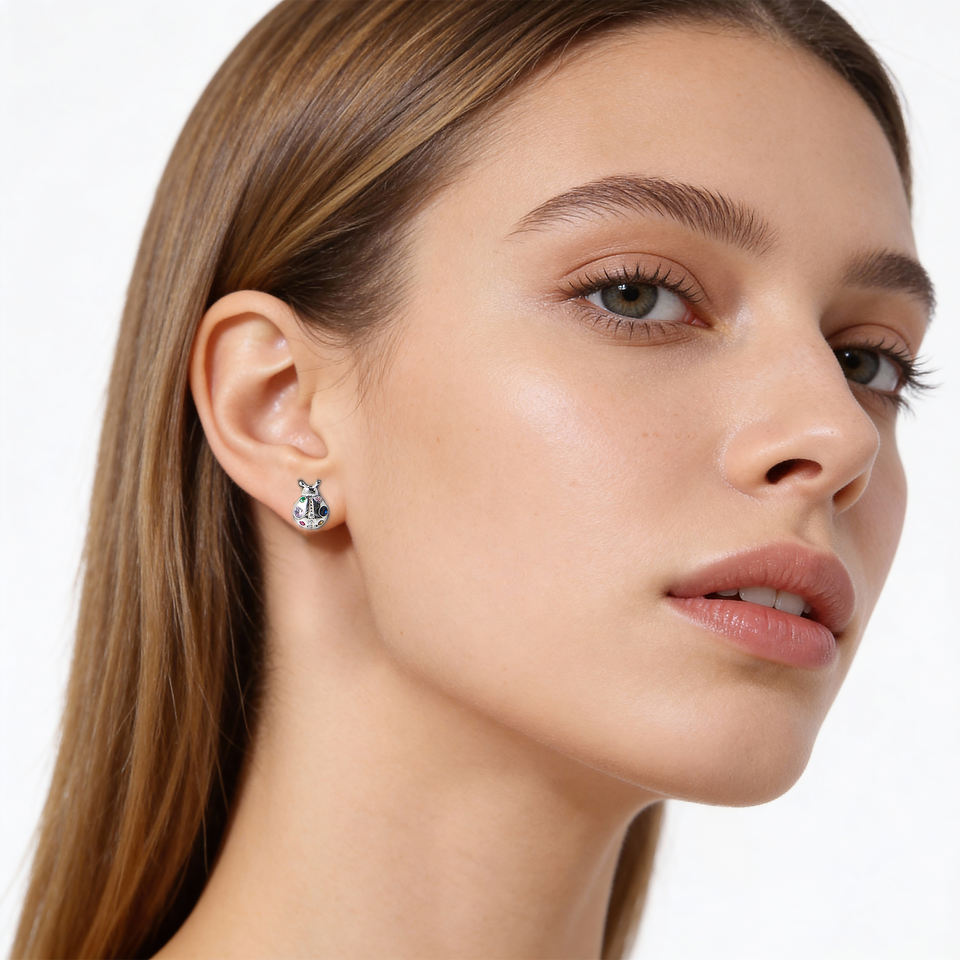 Cute Lovely 925 Sterling Silver Colorful Rainbow CZ Small Cute Ladybug Stud Earrings for Girls Women Parties Gift