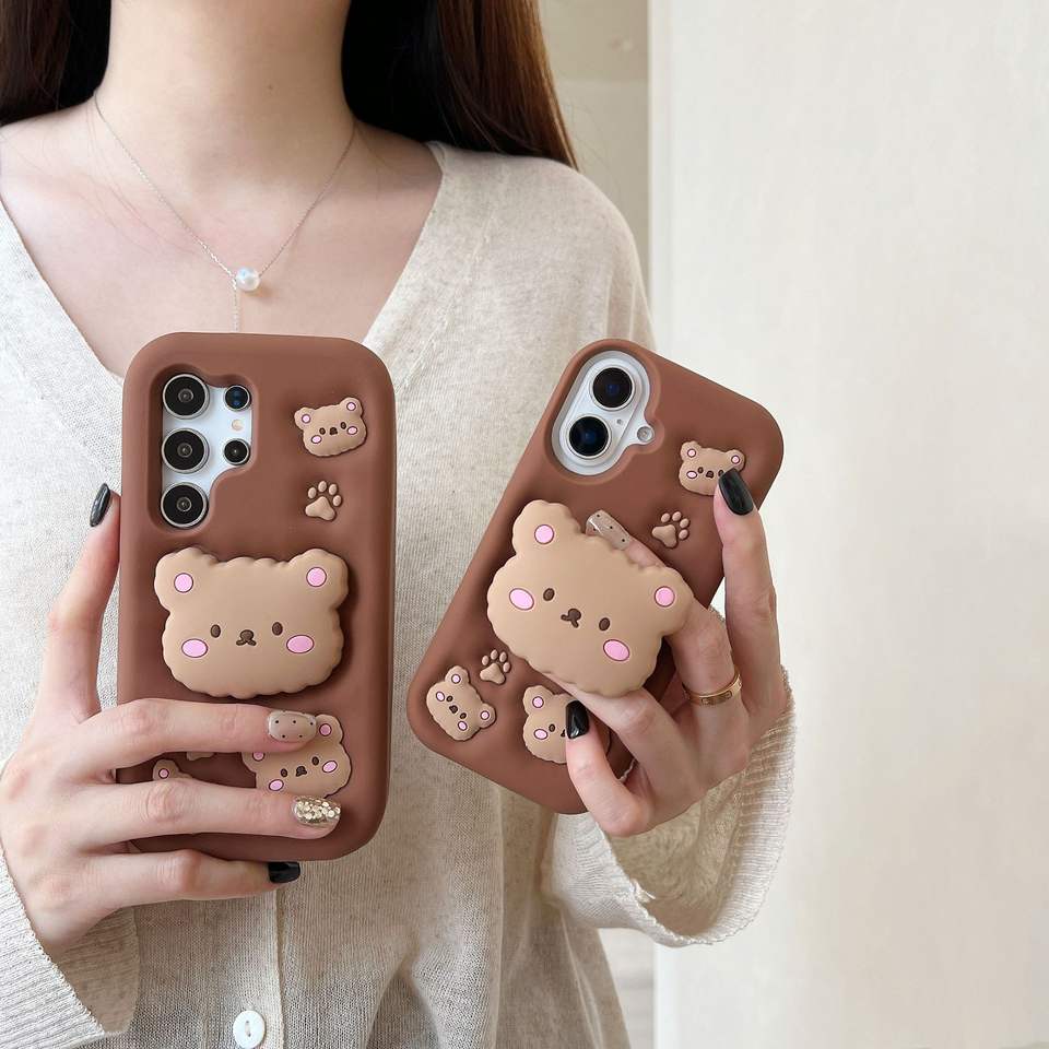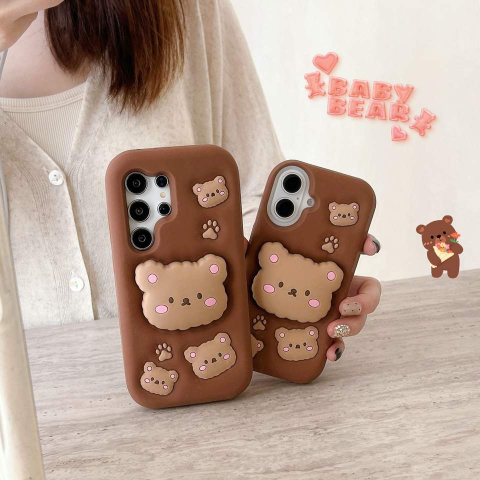 Cute Lovely Bear 3D Silicone Shockproof Phone Socket Holder Cover for Redmi Note 14 Note 13