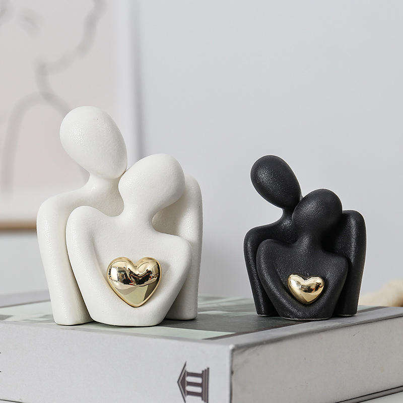 Statuetta Moderna in Ceramica di Coppia Abbracciata, Decorazione per Mobile TV, Scultura Ornamentale per Casa e Camera da Letto