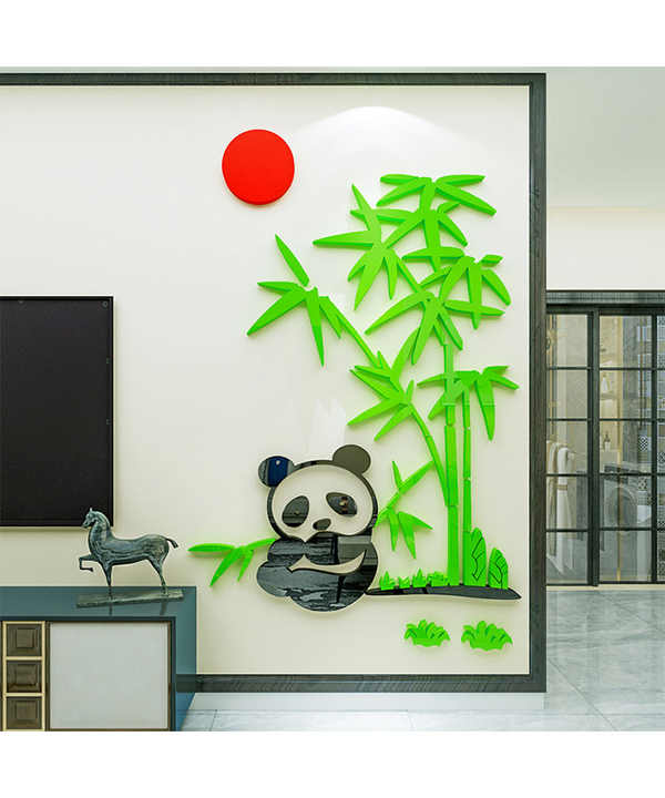 Cute Pandas Playing in Bamboo Forest Waterproof Eco-friendly UV Printed Acrylic Wall Sticker for Kids Bedroom Home Decoration