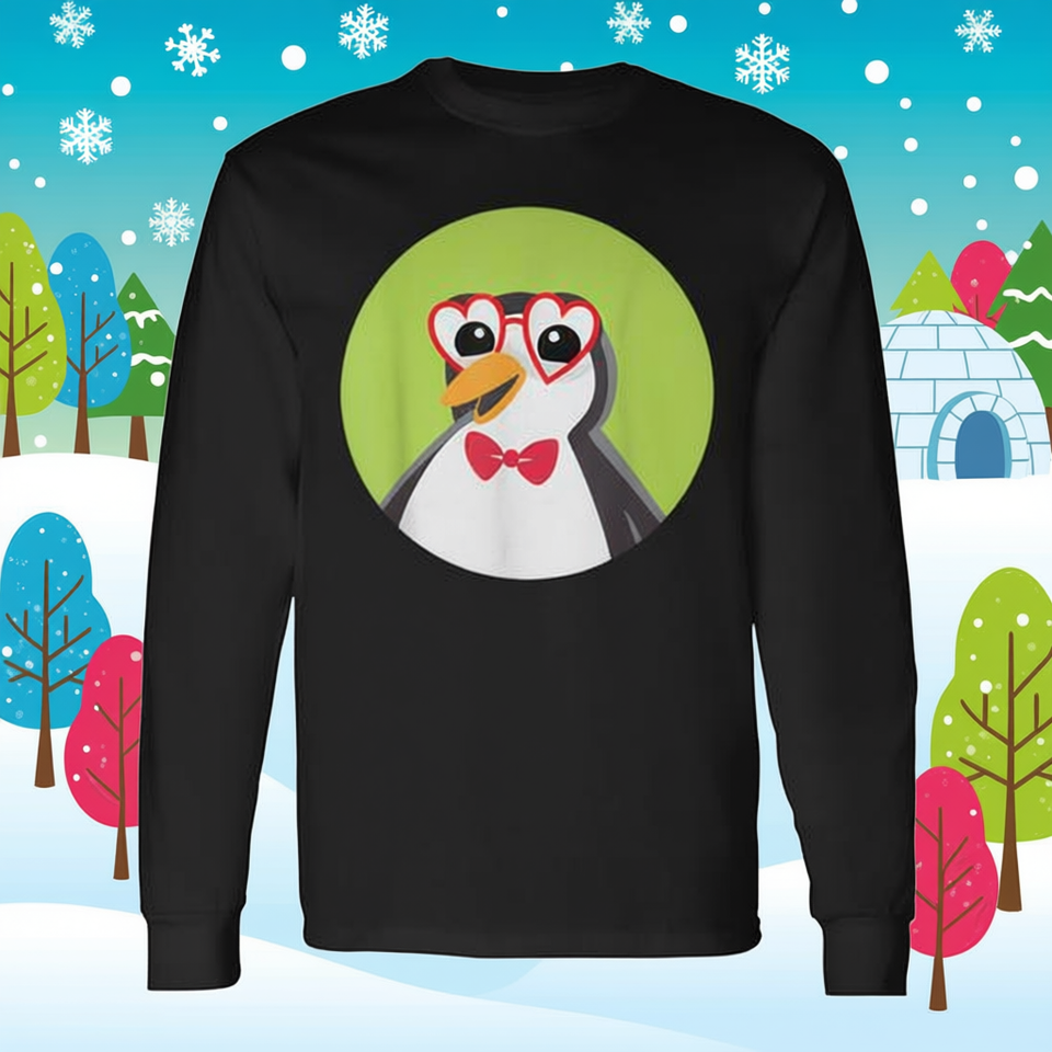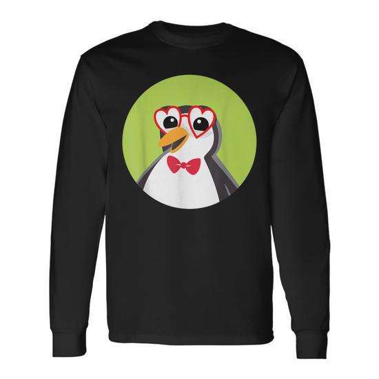 Simpatico pinguino con occhiali a forma di cuore e maglietta a maniche lunghe con fiocco per bambini