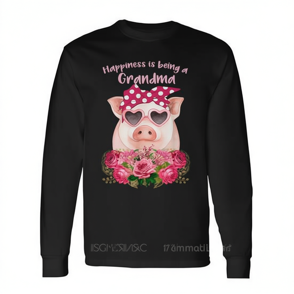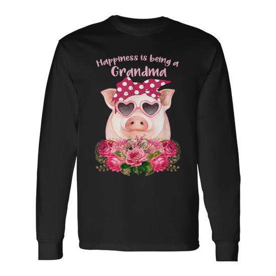 Simpatica maglietta a maniche lunghe con disegno di nonna maiale, il felicità è essere nonna, design per nonne