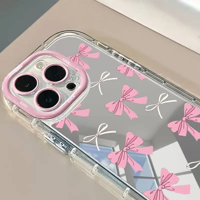 Custodia per Telefono con Fiocco Rosa Carino per iPhone 16, iPhone 11, 13, 12, 14, 15 Pro Max, XR, XS, X, 7, 8 Plus, SE, Cover Morbida Antiurto con Fiocco
