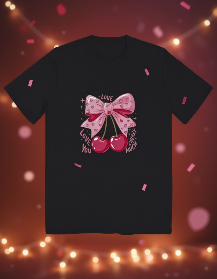 Cute Pink Cherry Printed T-Shirt Unisex Soft Cotton Short Sleeve Regular Fit All Seasons Valentine's Day New Year Fun Style