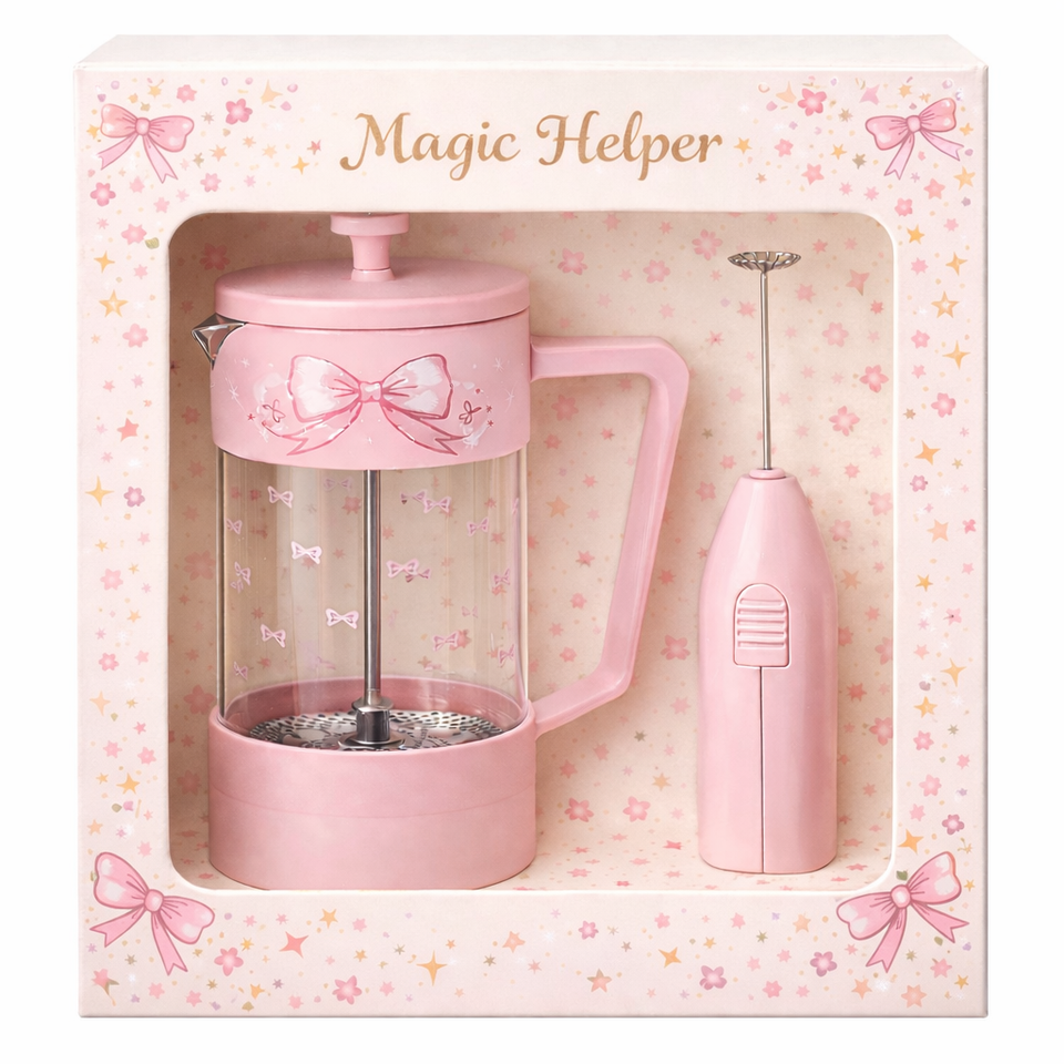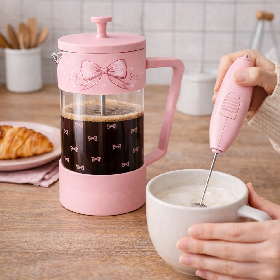 Cute Pink French Press Coffee Maker with Milk Frother Gift Box Custom Logo Wholesale French Press and Frother Set
