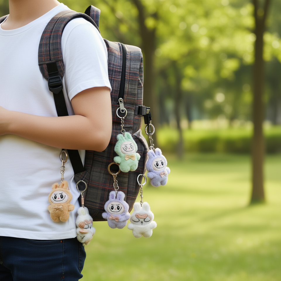 Portachiavi con coniglietto di peluche carino con papillon, 2 pezzi per colore, per borsa o chiavi