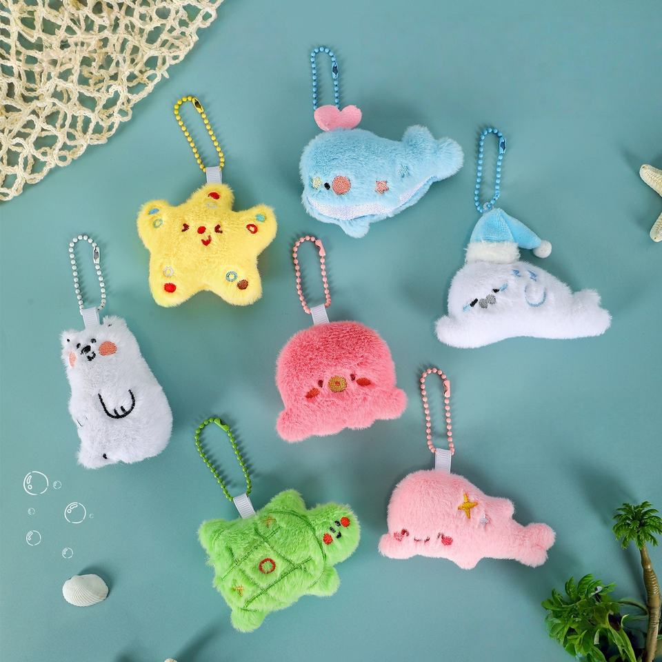 Portachiavi in Peluche a Forma di Animale Marino, Ciondolo Colorato a Cartone Animato, Charm per Zaino Scolastico per Bambini, Mini Giocattoli di Peluche, Gadget per Feste di Compleanno