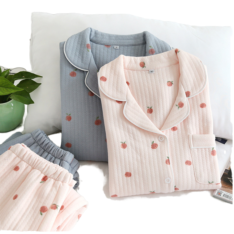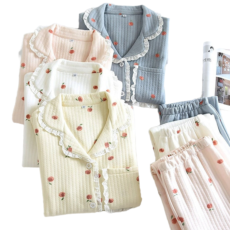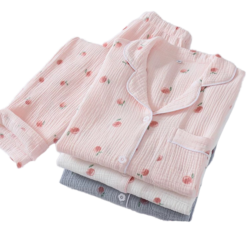 Cute Printed Womens Pajama Set Cotton Pajamas Long 2pc Button Down Sleepwear Set Loungewear for Women Set