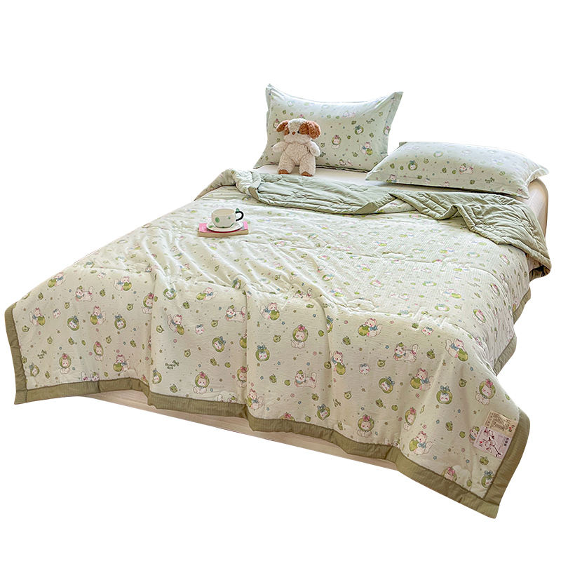 Set Copripiumino Estivo a Righe con Cuccioli - Morbida Biancheria da Letto a Doppio Strato in Garza per Bambini, Piumino Leggero e Traspirante