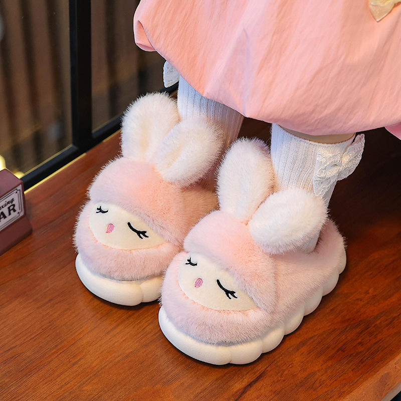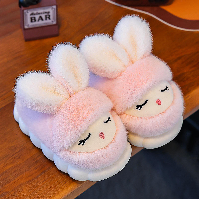 Graziose scarpe invernali di coniglio in cotone per bambine scarpe Casual da bambino con fondo spesso foderato in pile e antiscivolo per uso domestico