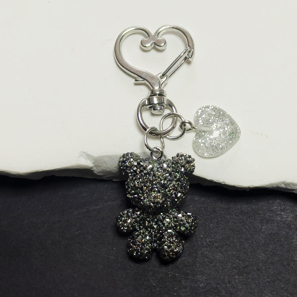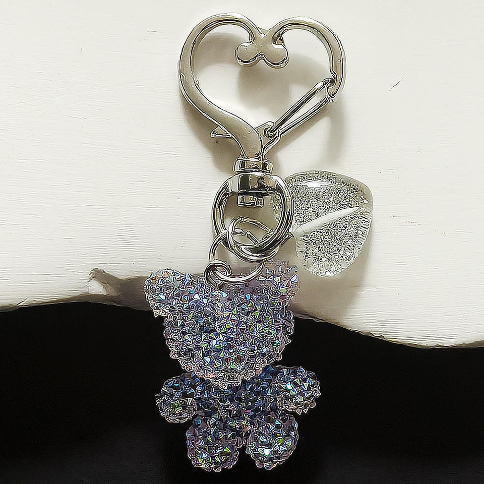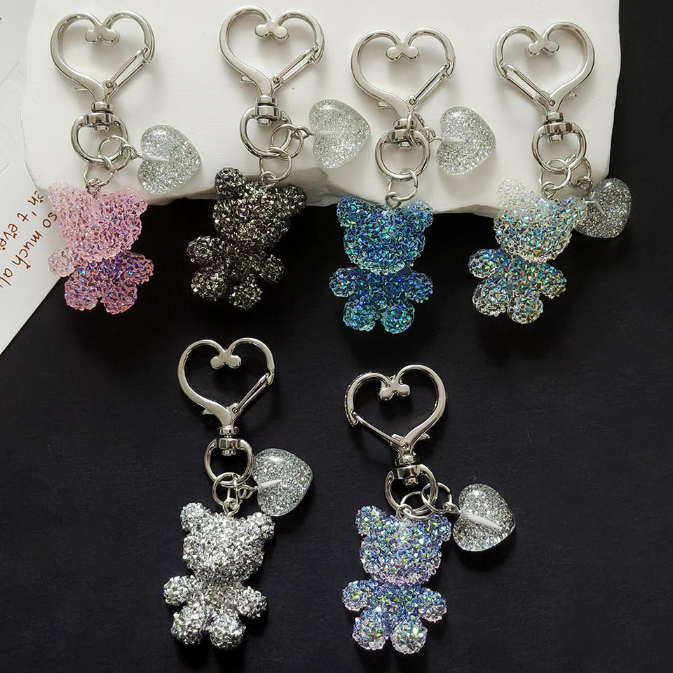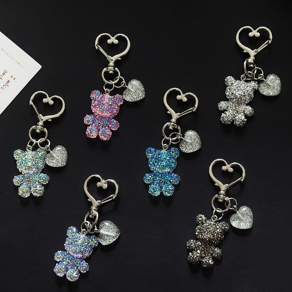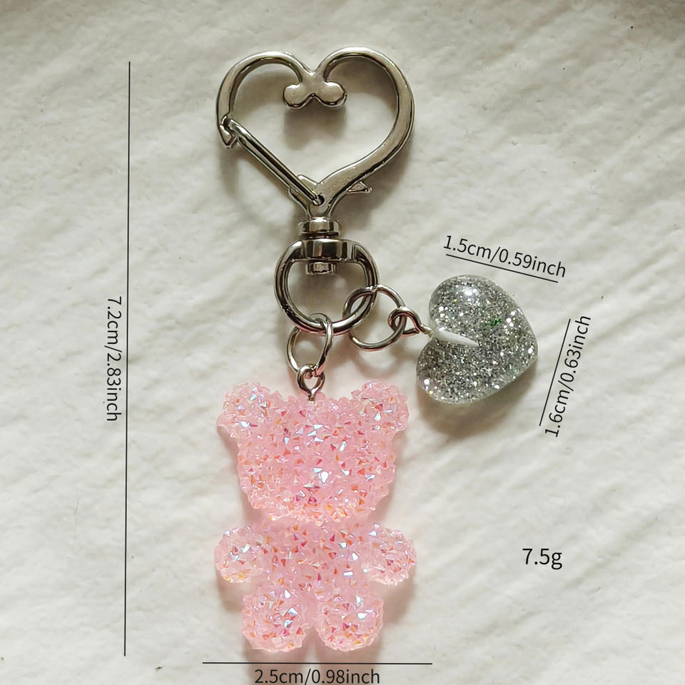 Portachiavi in resina con strass, ciondolo orsetto, piccolo orsetto in plastica con cuore glitterato, ciondolo per borsa, accessori portachiavi