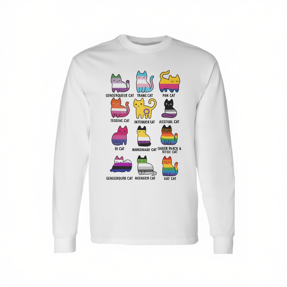 Maglietta a Maniche Lunghe con Grafica Retrò LGBT, Unisex, Stampa Digitale per Attività Promozionali