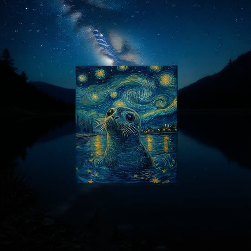 Cute Seal Van Gogh Starry Night Graphic T-Shirt Adult Unisex Medium