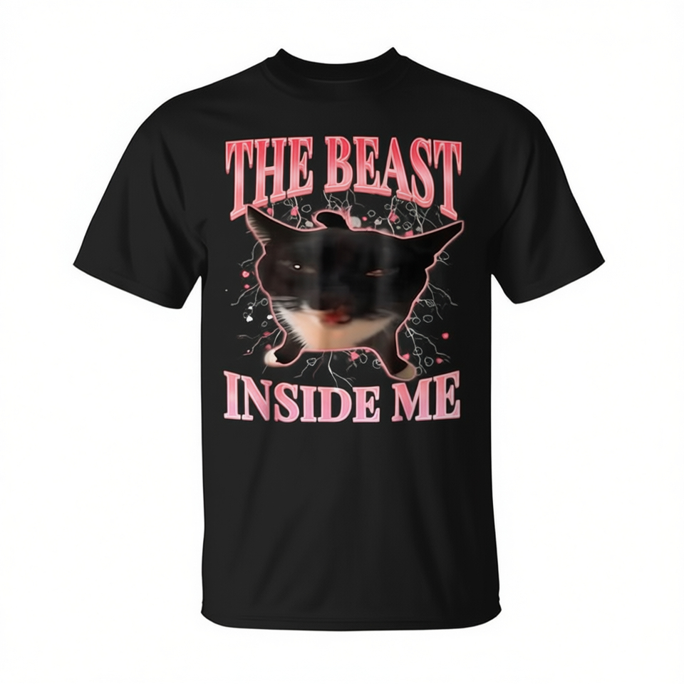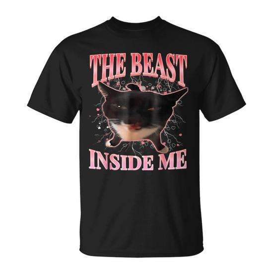 T-shirt divertente con meme gatto simpatico: prodotto promozionale umoristico con la bestia che è in esso, per gli amanti dei gatti