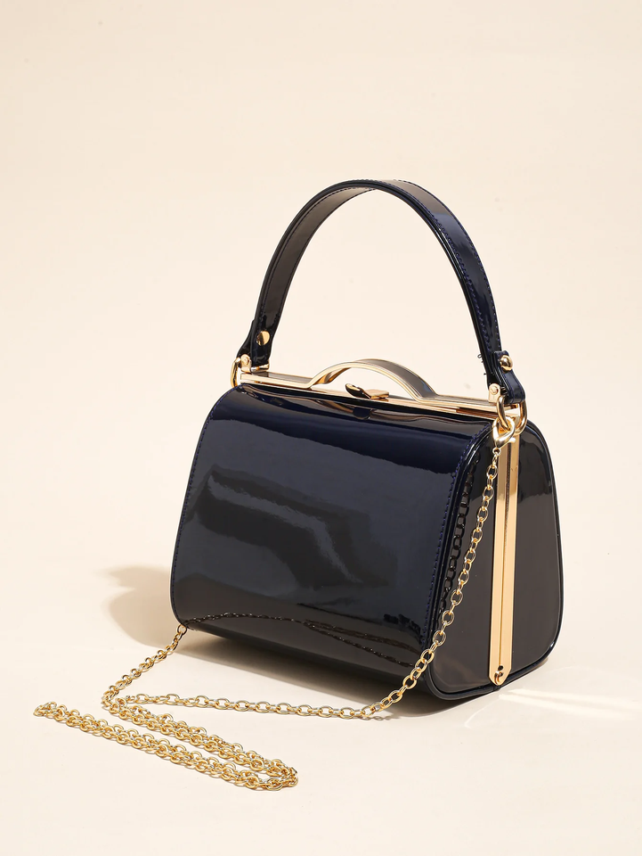 Graziosa borsa da sera alla moda semplice con vernice in pelle perlescente custodia rigida a mano con chiusura a cerniera