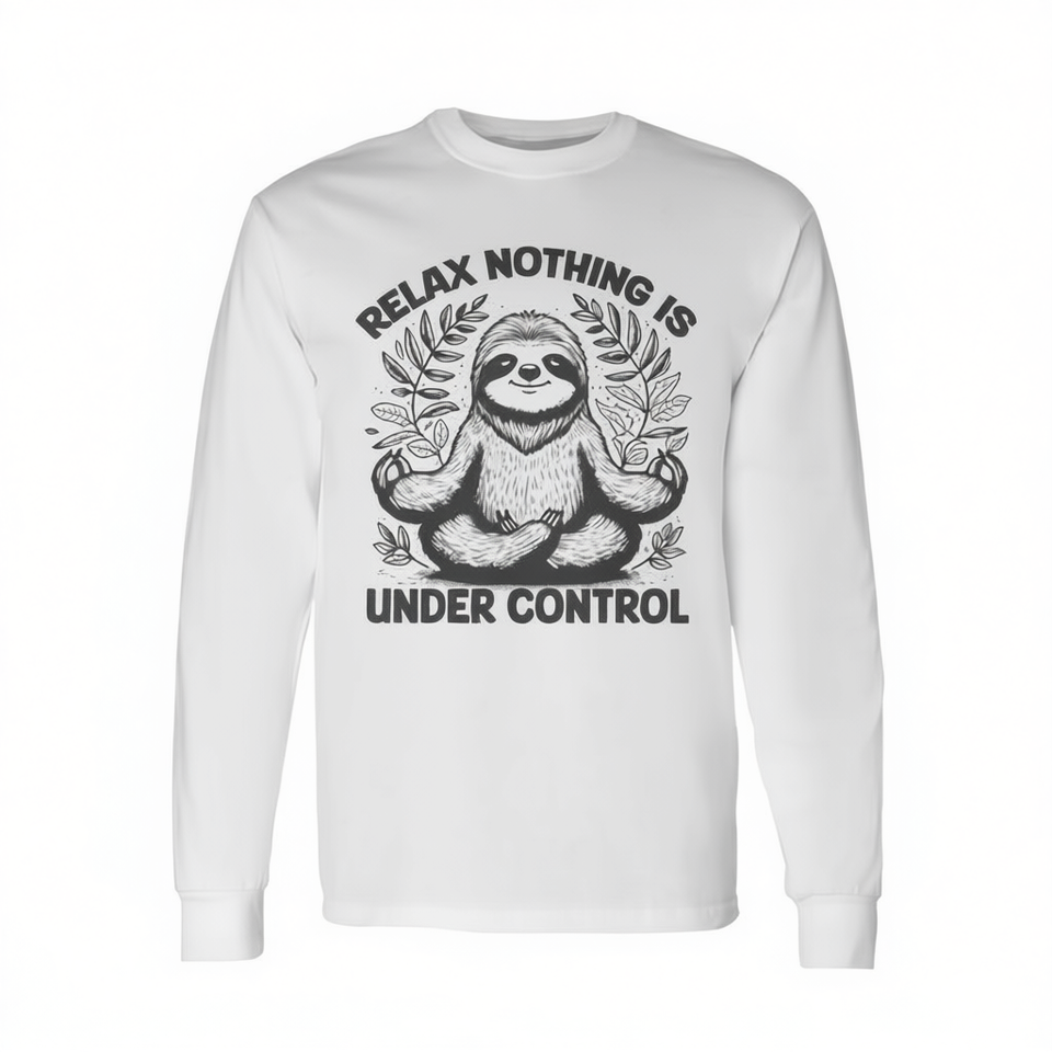 Simpatica maglietta a maniche lunghe con stampa di una lenzuola di gomma che fa yoga: rilassati e goditi il tempo libero con questa affascinante maglietta promozionale