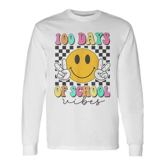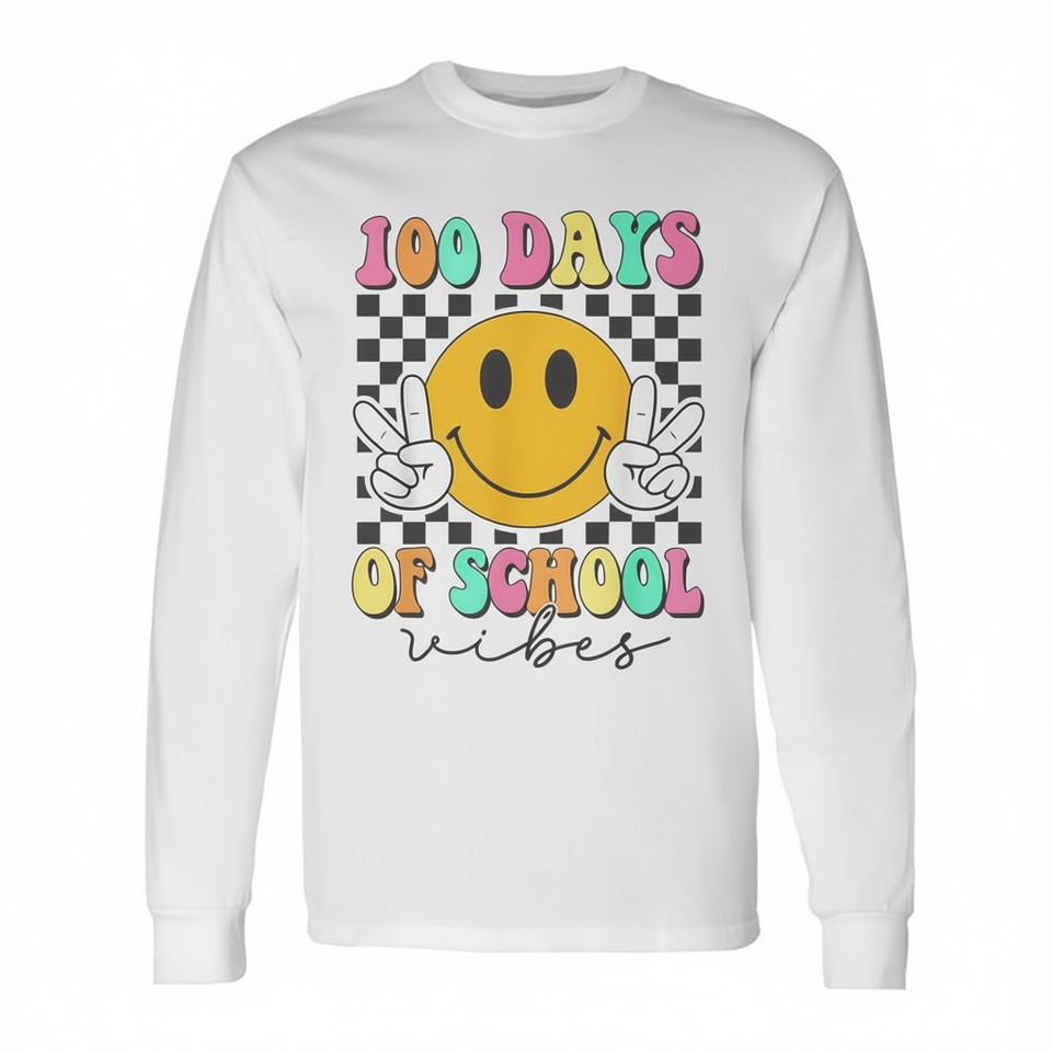 Maglietta a Maniche Lunghe con Faccina Sorridente per il 100° Giorno di Scuola, T-Shirt Promozionale per l'Atmosfera del 100° Giorno di Scuola