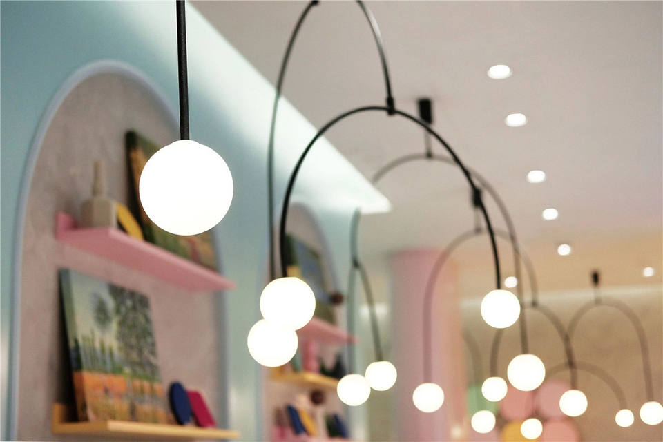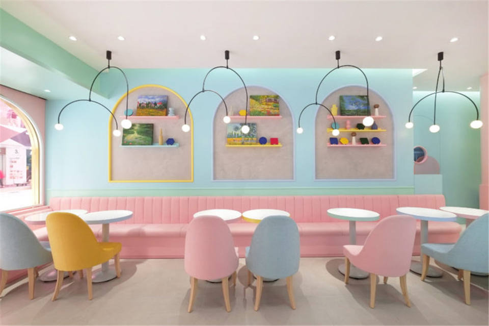 Decorazioni per negozi dolci carini Interior Design personalizzato per gelateria rosa per esposizione di Yogurt congelato Design per negozio di tè al latte e caffè
