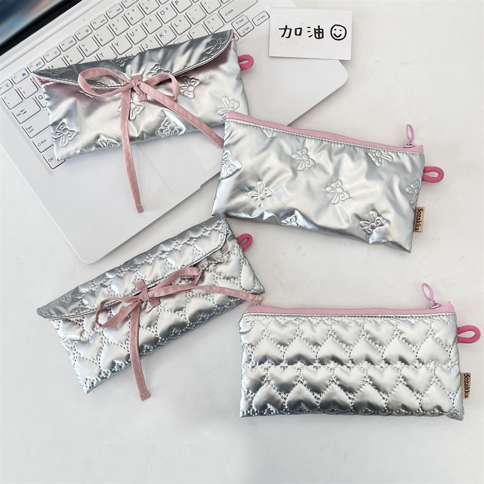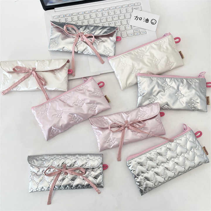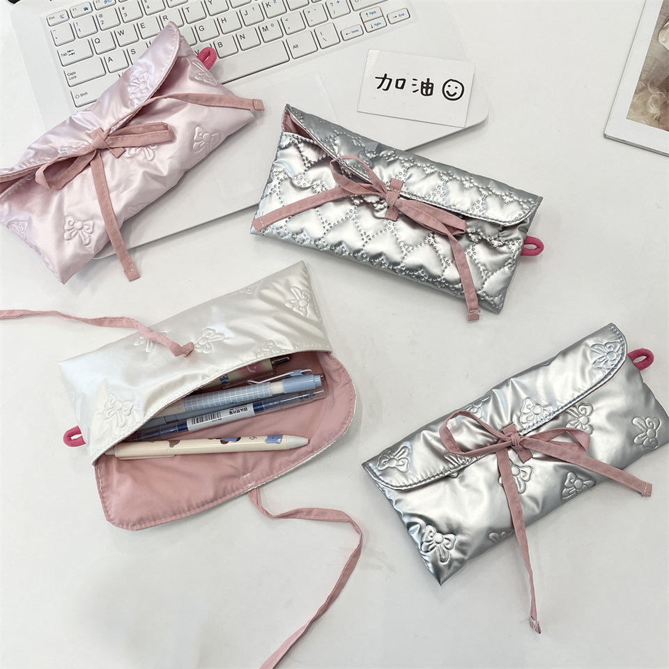 Astuccio Portamatite a Forma di Asciugamano con Cerniera e Fiocco, Piccola Borsa per il Trucco, Portapenne per Sopracciglia, Organizer per Pennelli Cosmetici e Gioielli